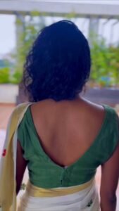 Kerala Saree with Red Ajrakh Chanderi Border