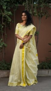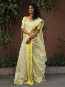 Mor Pankh Golden Zari Kerala Kasavu Saree