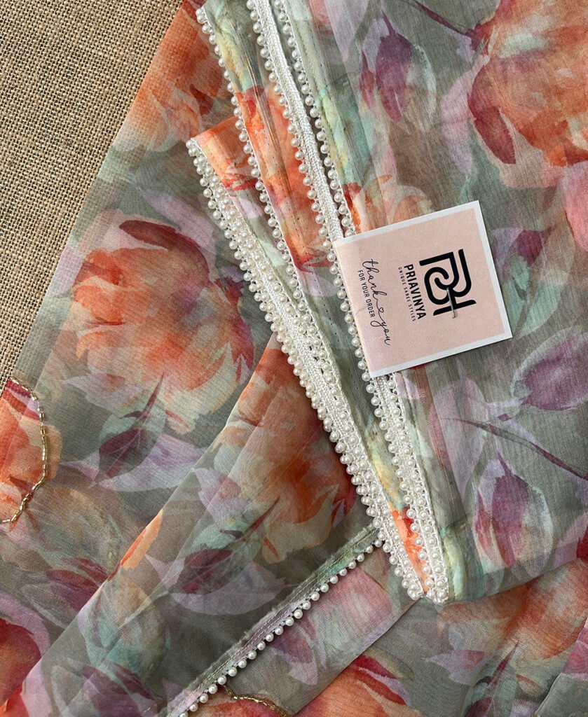 Multicolour Floral Pattern Organza Silk Saree