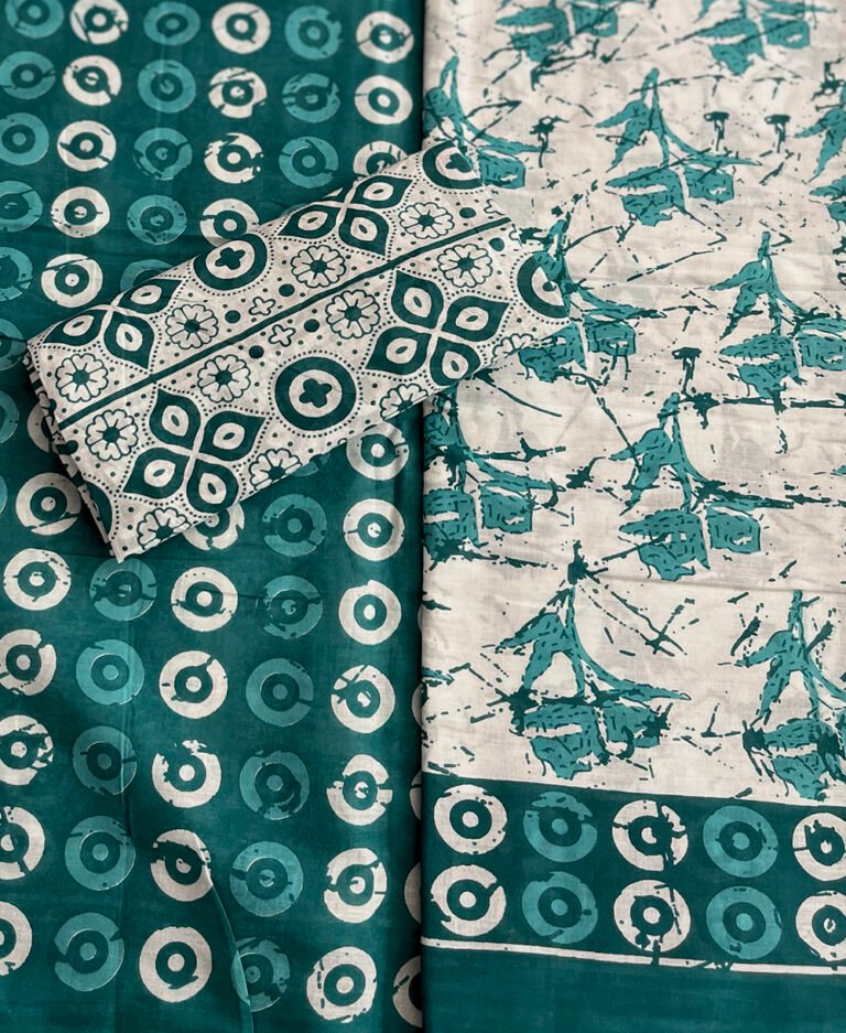 Green Hand Block Printed Mul Cotton Saree